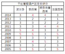 近10年葡萄酒的年份優劣一覽表