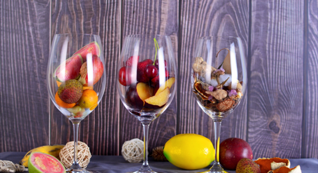 白葡萄酒的果香可分為四大類群:柑橘類水果、綠色水果、核果以及熱帶水果。比起紅葡萄酒,白葡萄酒的果香更容易受到產(chǎn)區(qū)氣候的影響。如同樣使用霞多麗(Chardonnay)釀造的白葡萄酒,在氣候寒冷的夏布利(Chablis)產(chǎn)區(qū)常體現(xiàn)出明顯的綠色水果和柑橘類水果的香氣,而在氣候溫暖的瑪格麗特河(Margaret River)產(chǎn)區(qū)則帶有濃郁的核果類香氣。