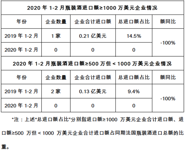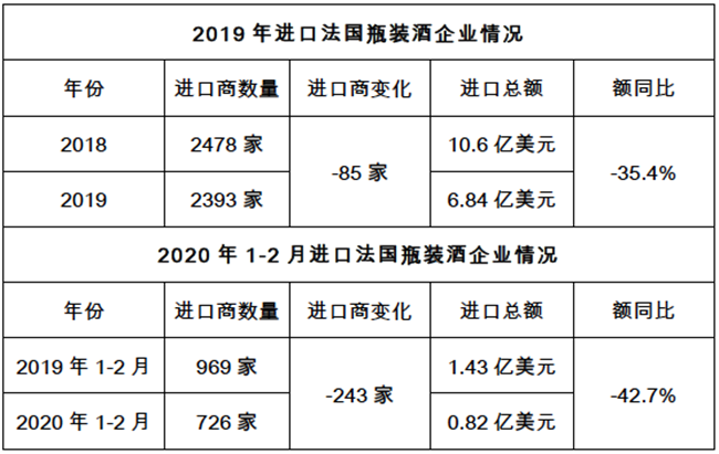 今年1-2月,市場(chǎng)低迷與疫情影響的雙重沖擊下,更是出現(xiàn)了無(wú)企業(yè)進(jìn)口法國(guó)瓶裝酒超過(guò)500萬(wàn)美元的慘淡開局。